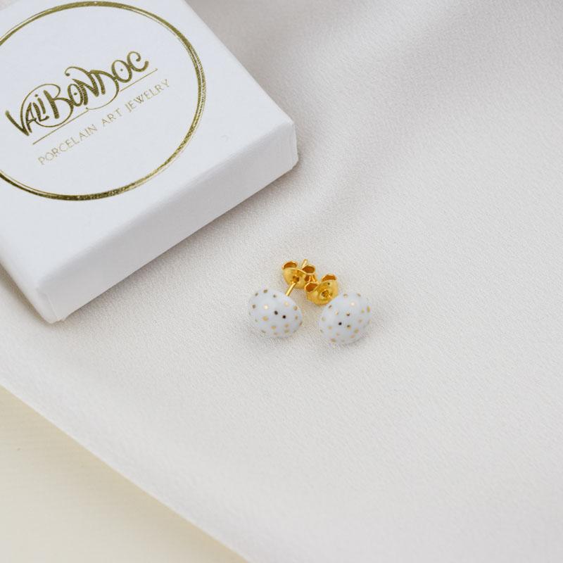Cercei butoni din portelan - Puncte De Aur (EAR-3009)