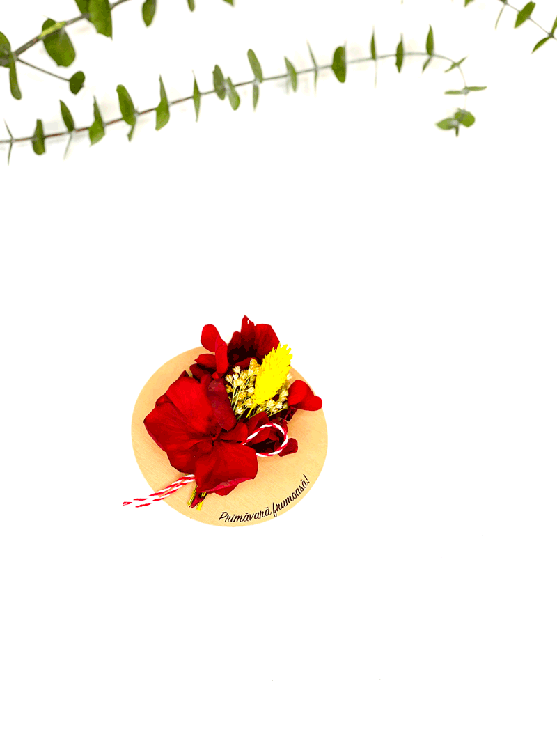 Daruieste un martisor special, un mini buchetel de flori prezervate, cu brosa atasata, un martiosr ce poate fi purtat in piept intreaga primavara.