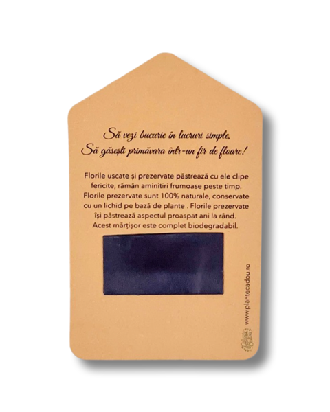 Martisorul este realizat din flori uscate si prezervate, este un un produs 100% natural, biodegradabil.