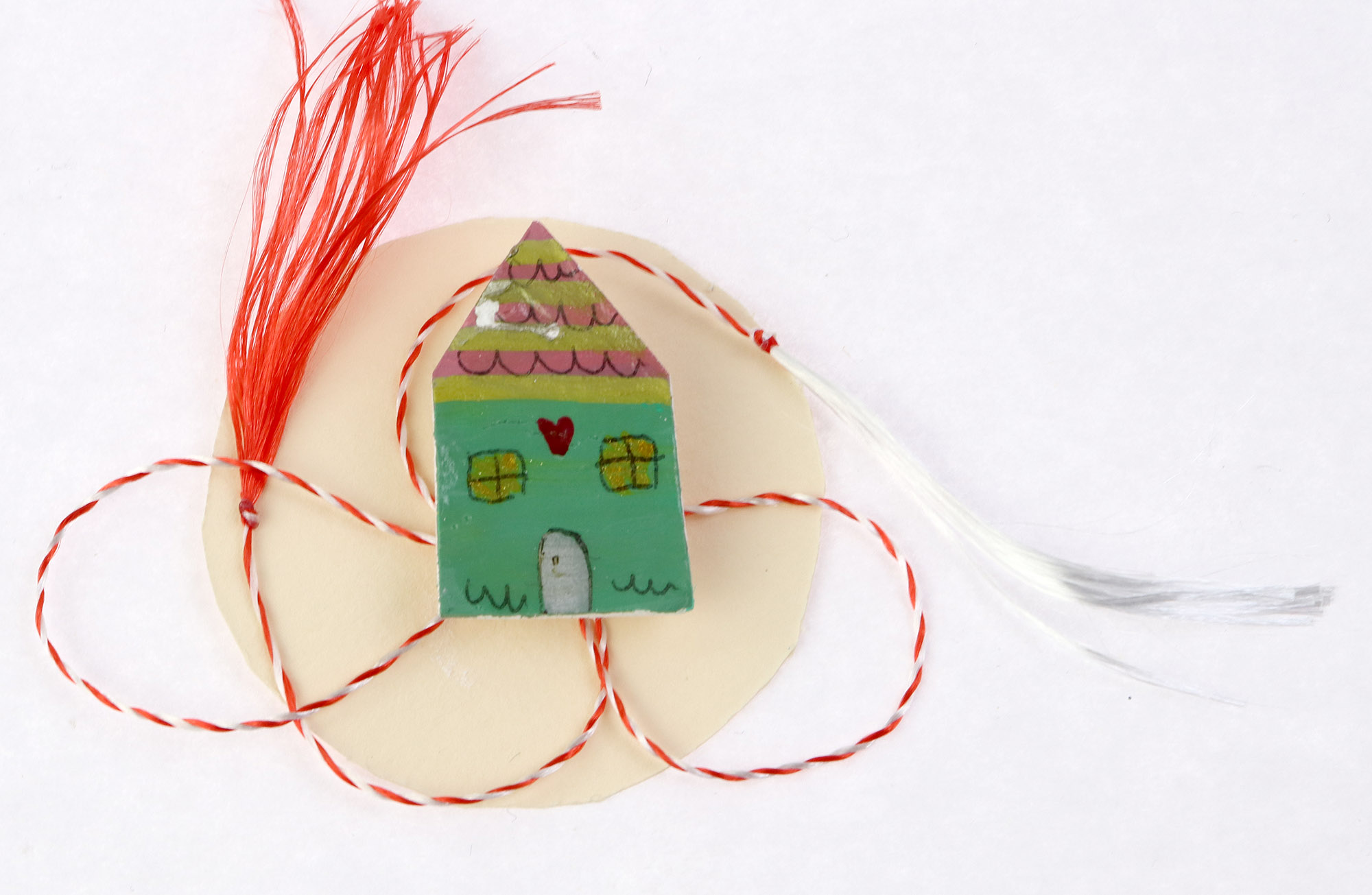 Mărțișor lucrat manual, din lut, dimensiuni: 3 x 3 cm.