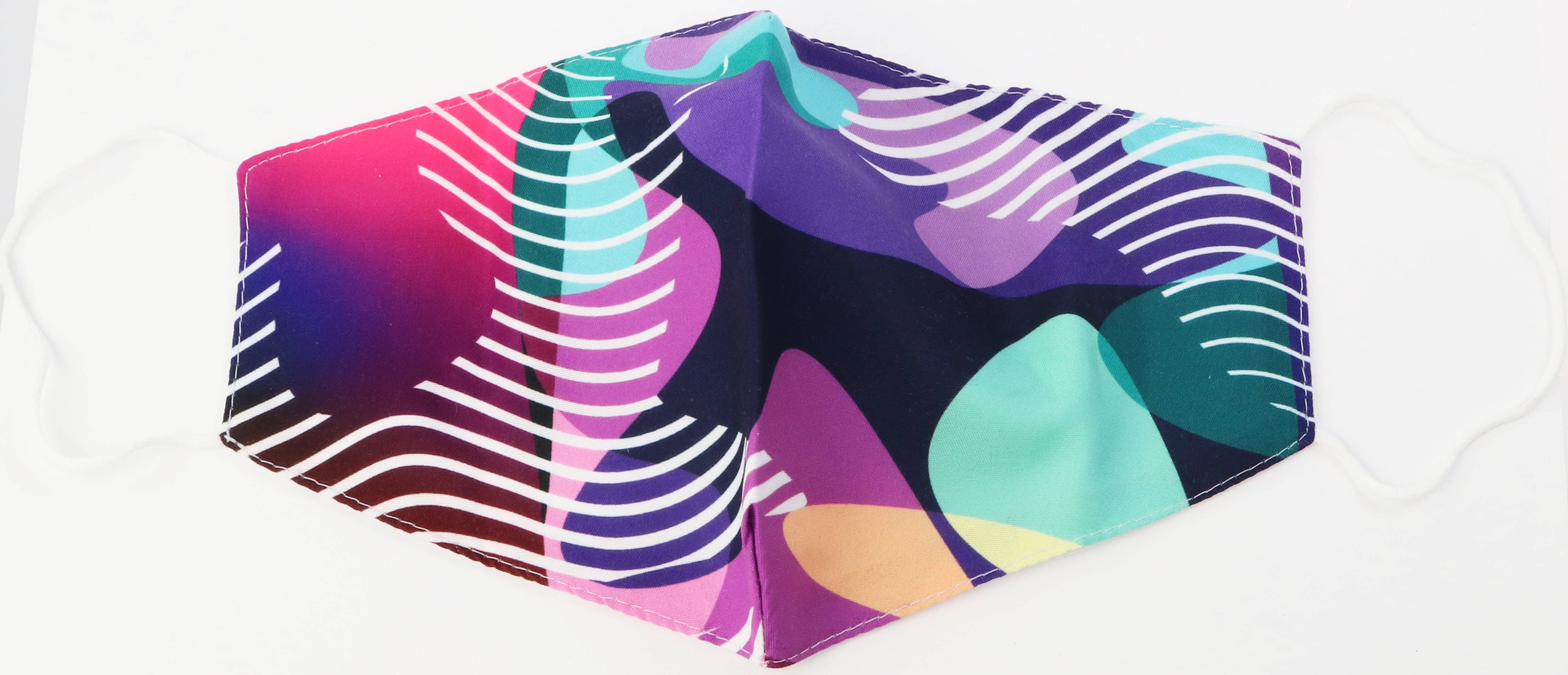 Masca Art tip accesoriu, 2 straturi poliester, cu fibra antibacteriana prevazuta cu sarma pentru nas si elastic moale.