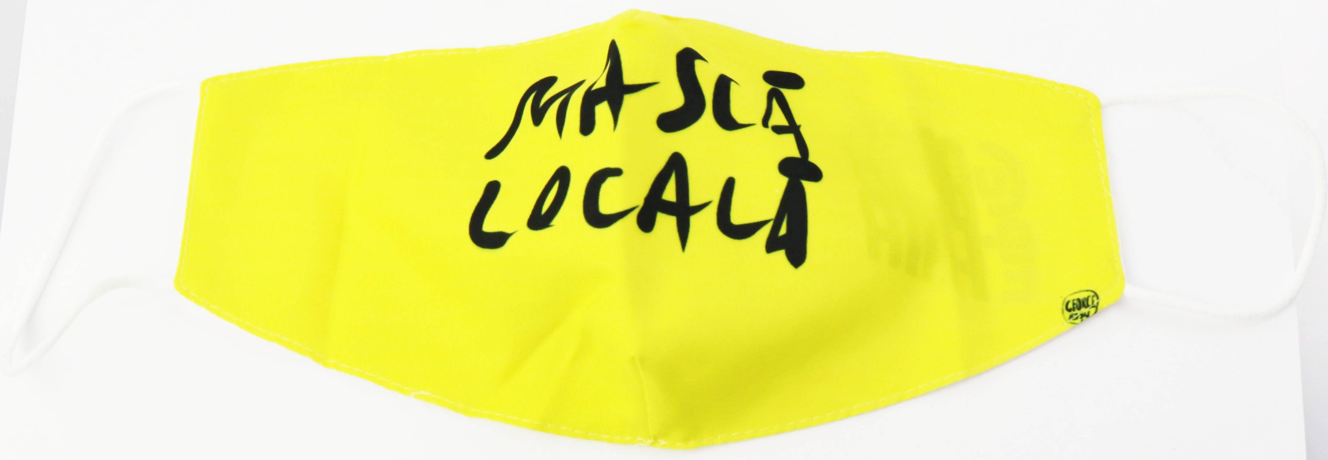 Masca Art tip accesoriu, 2 straturi poliester, cu fibra antibacteriana prevazuta cu sarma pentru nas si elastic moale.
