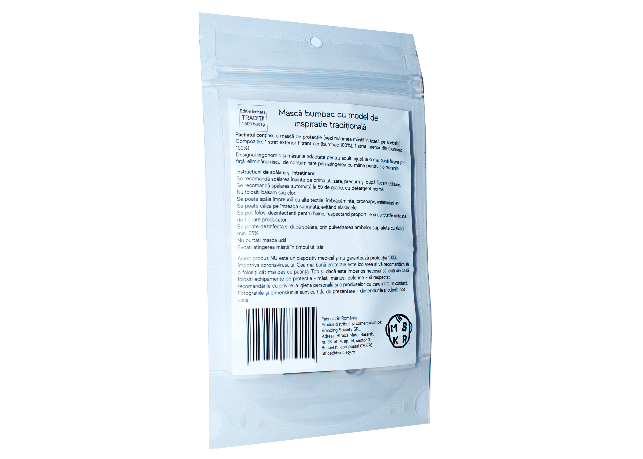 Masca textila este confectionata in editie limitata de 1500 bucati per model.