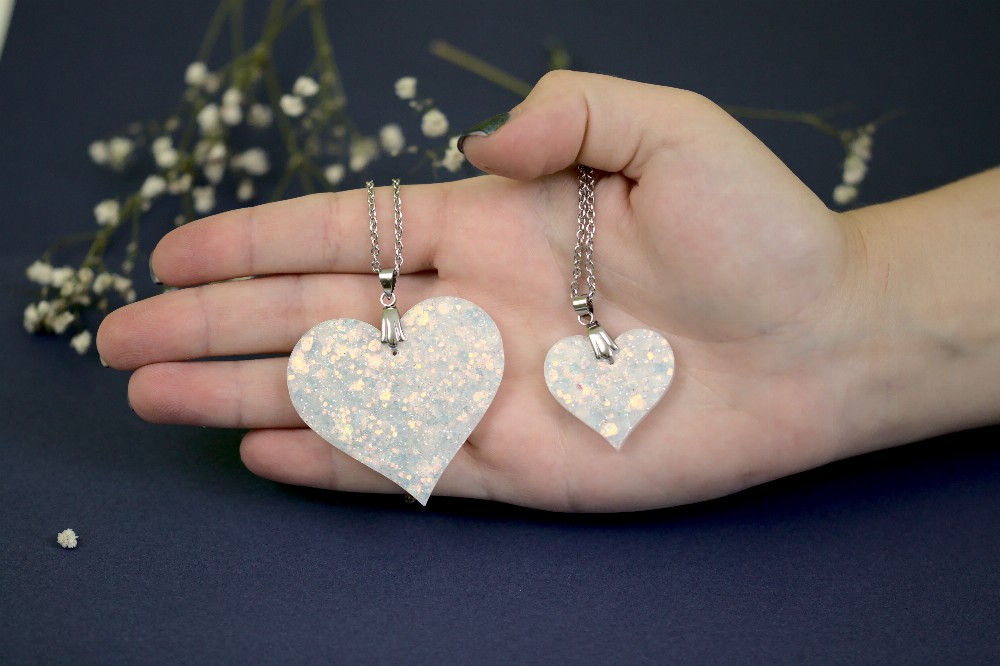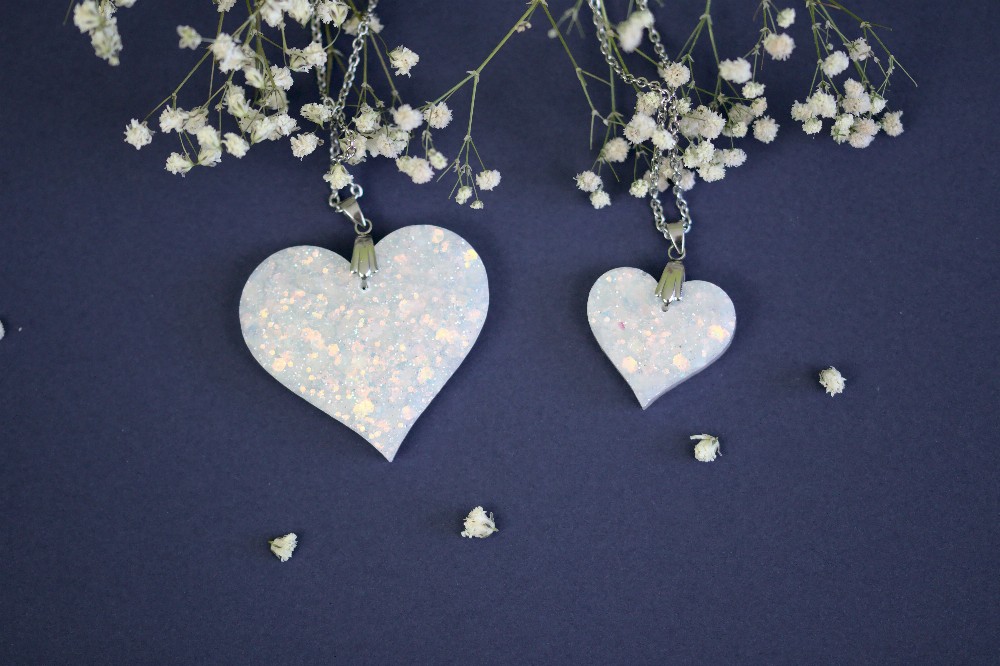 Acest set de bijuterii este realizat folosind rășină epoxidică.