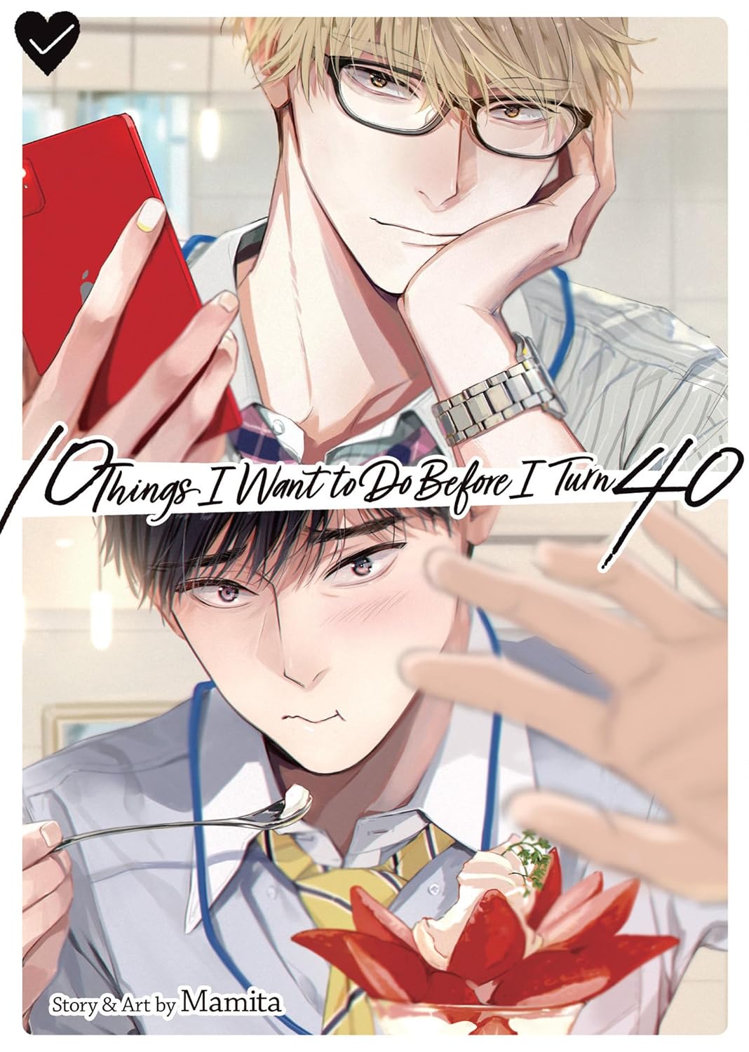 Suzume Tojo is just three months away from turning forty and realizes there's so much he hasn't done with his life! So, he makes a plan: create a private list of things he's always wanted to do and check them off before turning the big four-oh. It's a rather simple list, filled with goals that should be easy to accomplish, like a takoyaki party, enjoying a parfait out in a cafe, and spending his birthday with a lover. Except, that last one comes with a major problem-Tojo hasn't had a lover in ten years! But when Keishi Tanaka, Tojo's handsome junior at the company, discovers the secret list, he's determined to help Tojo check off every single item-starting with the "lover" part!