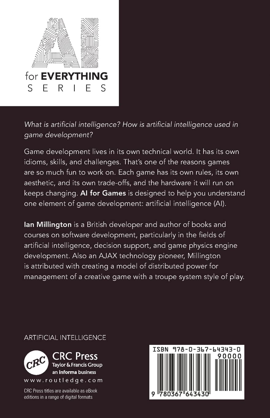 Game development lives in its own technical world. It has its own idioms, skills, and challenges. That’s one of the reasons games are so much fun to work on. Each game has its own rules, its own aesthetic, and its own trade-offs, and the hardware it will run on keeps changing. AI for Games is designed to help you understand one element of game development: artificial intelligence (AI).
