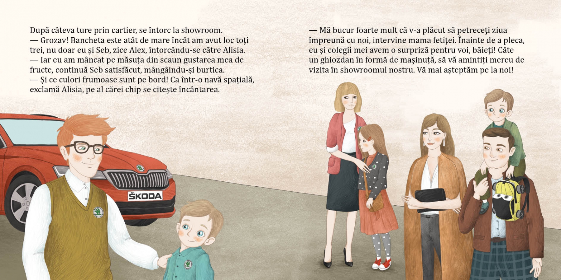 In aceasta noua carte de povesti cu solutii de organizare potrivite pentru copii, Alex si Seb invata despre masini si descopera spatiile de depozitare din interior in care se pot pstra in ordine nu doar lucrurile si gustrile, ci si cartile, jocurile si jucariile. Dupa aventura in Tara Curcubeu, cei doi frati fac acum noi descoperiri si se bucur de momente petrecute cu familia. Copiii afla despre cat de important este siguranta in trafic, despre rolul consultantilor de vanzari, al mecanicilor care lucreaza in reprezentantele auto, dar si despre magia prezent in fiecare model de autoturism.