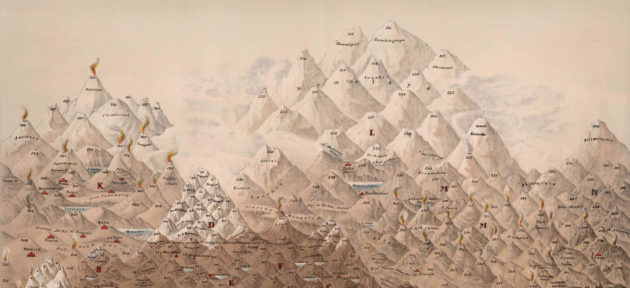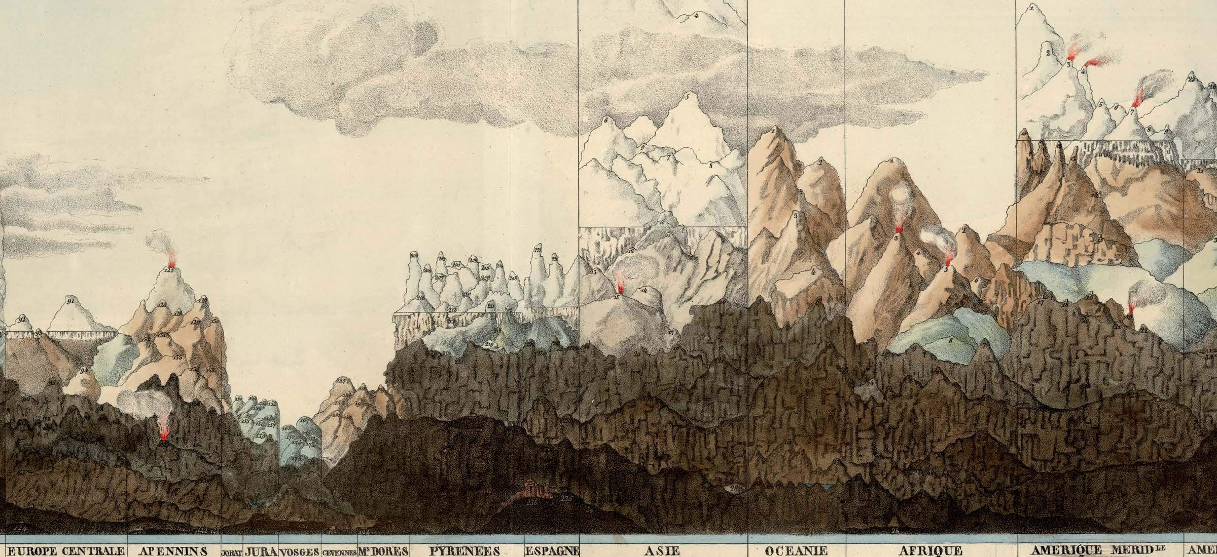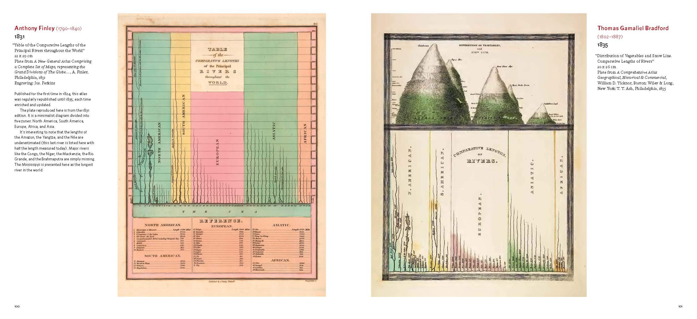 This is the first book to catalog comparative maps and tableaux that visualize the heights and lengths of the world’s mountains and rivers. Produced predominantly in the nineteenth century, these beautifully rendered maps emerged out of the tide of exploration and scientific developments in measuring techniques. Beginning with the work of explorer Alexander von Humboldt, these historic drawings reveal a world of artistic and imaginative difference. Many of them give way―and with visible joy―to the power of fantasy in a mesmerizing array of realistic and imaginary forms. Most of the maps are from the David Rumsey Historical Map Collection at Stanford University.