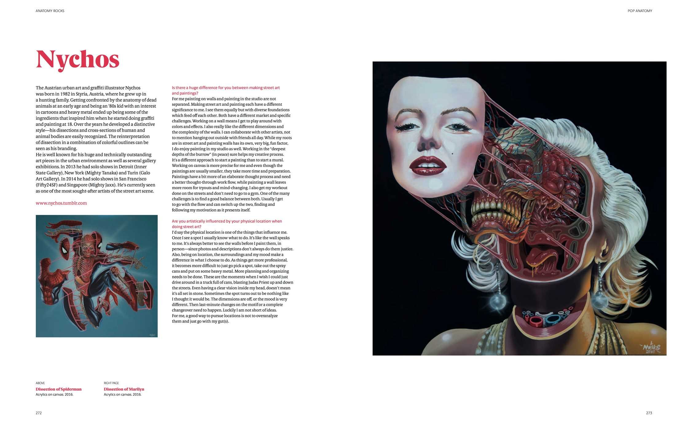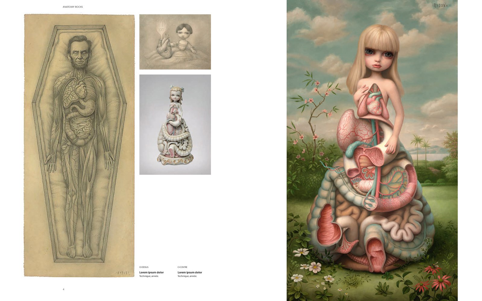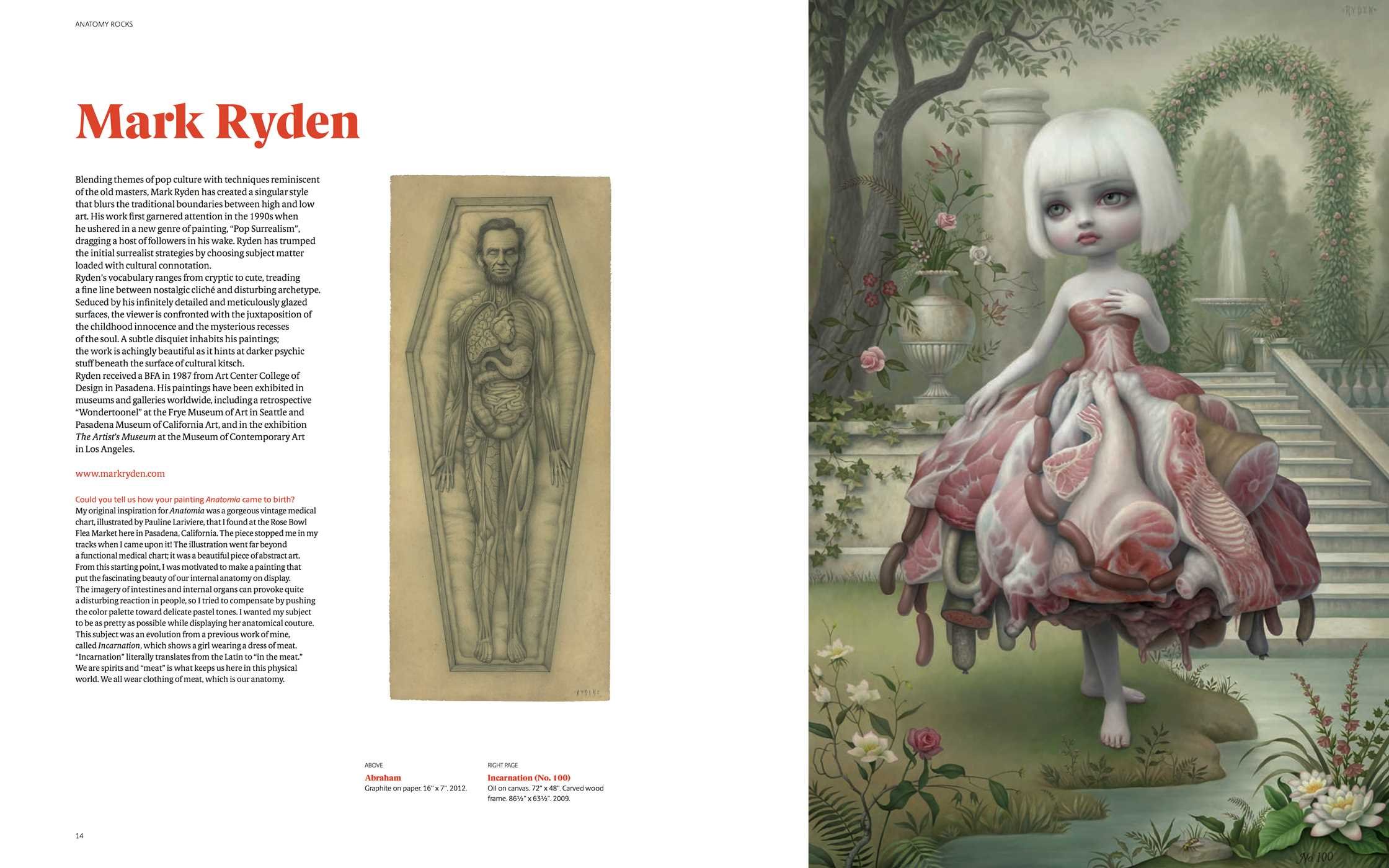 Since the first dissections of corpses, anatomy and art have always been connected. From Leonardo da Vinci’s drawings to Francis Bacon’s naked figures, artists have always been interested in the representation of the human as a biological being. Today, anatomy is back in vogue in contemporary art following the rebirth of gothic and horror in the entertainment industry. This book features a celebration of anatomy, flesh, and bone by more than 60 contemporary international artists and celebrities including Damien Hirst, Mark Ryden, Jason Freeny, and Nychos.