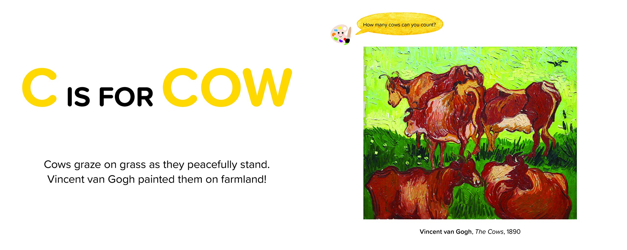 Spark your child’s creativity and curiosity with this delightfully curated alphabet book featuring some of the world’s most popular animals and iconic paintings.