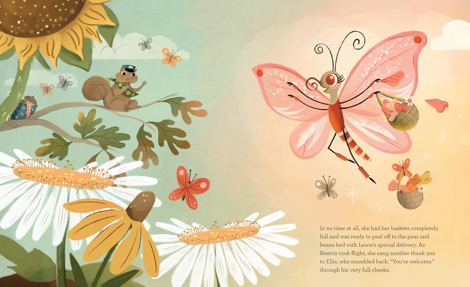 Beatrix Butterfly wakes up on the wrong side of the watermelon bed, starting her day not at all as planned. Feeling behind schedule and overwhelmed by her mile-long to-do list, she sinks back into bed covered by her cozy zinnia-petal duvet.