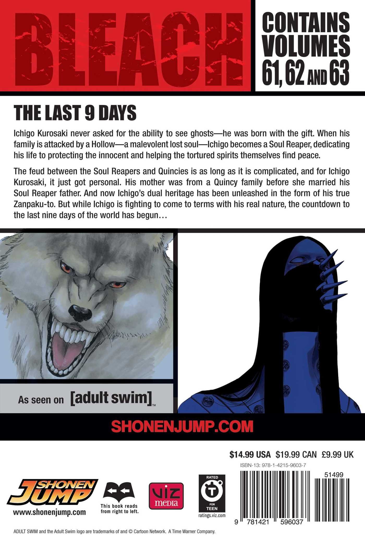 The feud between the Soul Reapers and Quincies is as long as it is complicated, and for Ichigo Kurosaki, it just got personal. His mother was from a Quincy family before she married his Soul Reaper father. And now Ichigo’s dual heritage has been unleashed in the form of his true Zanpaku-to. But while Ichigo is fighting to come to terms with his real nature, the countdown to the last nine days of the world has begun…