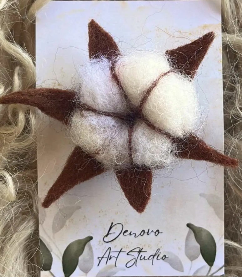 Floare realizata prin impaslirea lanii merinos cu insertii din fibre vascoza. Produs realizat realizat integral manual.