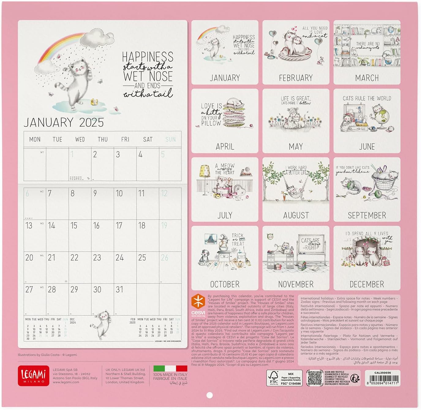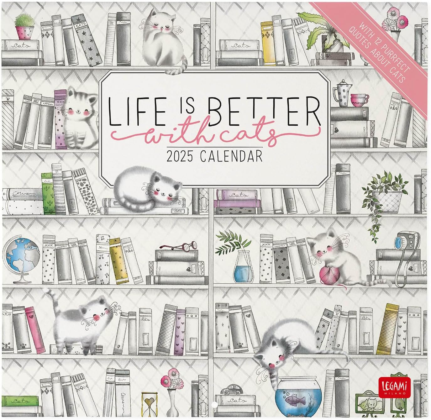 Calendarul de perete 2025 - Life is Better with Cats este absolut perfect, cu cele 12 file ale sale, fiecare corespunzând uneia dintre lunile anului.