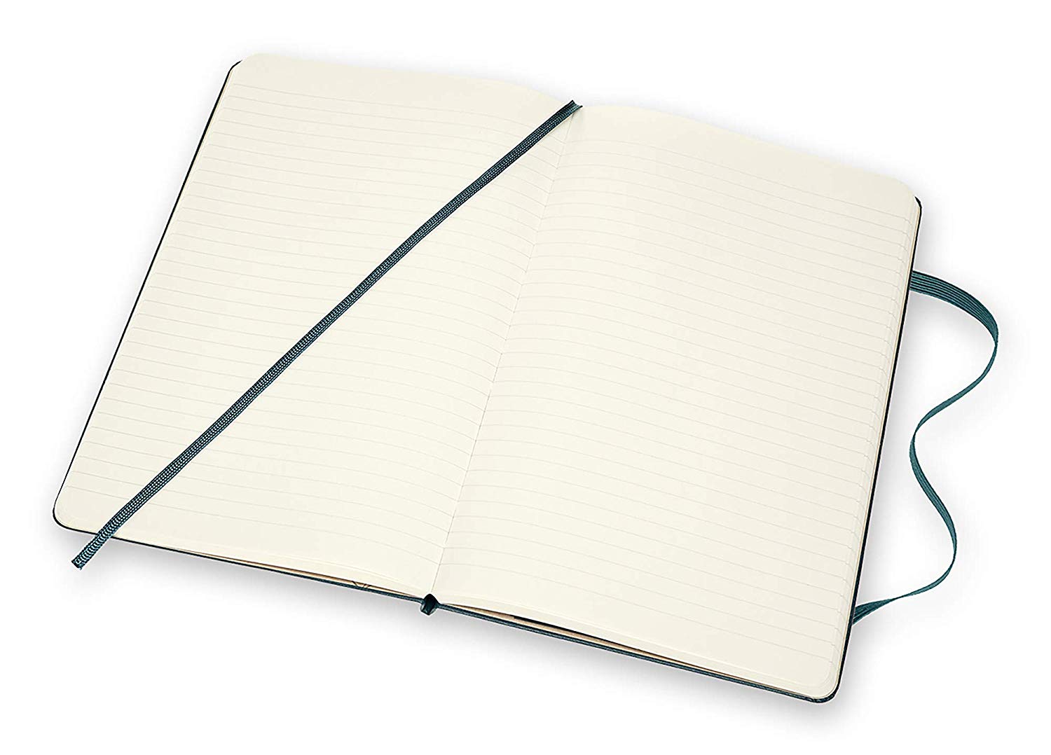 - lies flat, opens at 180°;