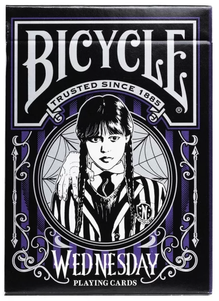 Paseste in lumea misterioasa a Nevermore Academy cu Bicycle Wednesday Playing Cards! Inspirate de celebrul serial Netflix cu Jenna Ortega in rolul Wednesday Addams, aceste carti de joc aduc un strop de eleganta gotica fiecarei partide. Fiecare carte, de un negru intens, este atent decorata si prezinta personaje indragite din serial, oferind un amestec perfect de stil si mister.