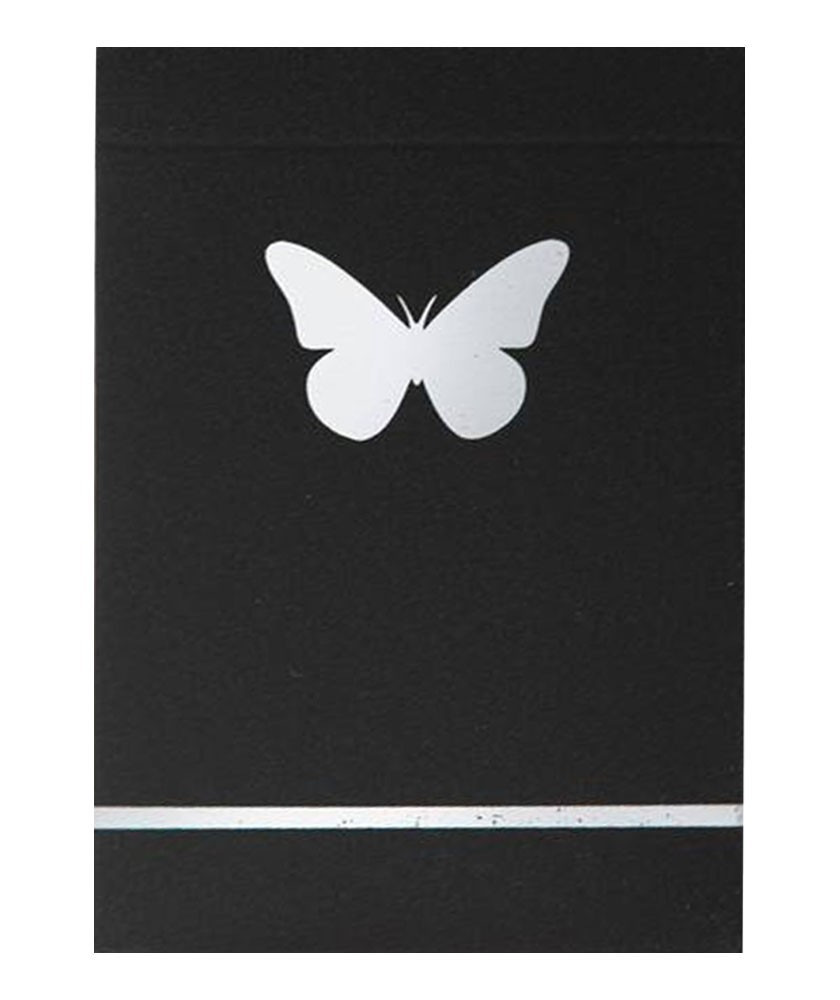 Cartile de joc Butterfly Black - Silver Gilded Marked sunt o editie de carti de joc premium, marcate, care pastreaza frumosul design si marcajul ingenios care i-a pacalit pe Pen & Teller, dar adauga eleganta prin combinarea negrului cu argintiu si margini argintii - gilded. Desi pare un pachet de carti de joc prea frumos pentru a fi utilizat la maxim, este tocmai astfel. Marginile argintii (gilded) au fost create impreuna cu un grup de specialisti din Franta ca sa fie pastrata calitatea cartilor, sa protejeze impotriva umiditatii, a murdaririi de pe maini care de obicei da pachetului un aspect imbatranit. Aceasta editie marcata contine 54 de carti de joc, o carte spate dublu, instructiuni de utilizare a sistemelor de marcaj (da, cartile sunt marcate cu mai multe sisteme secrete).