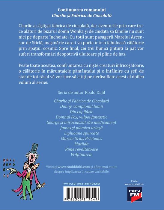 Continuarea romanului Charlie și Fabrica de Ciocolată.