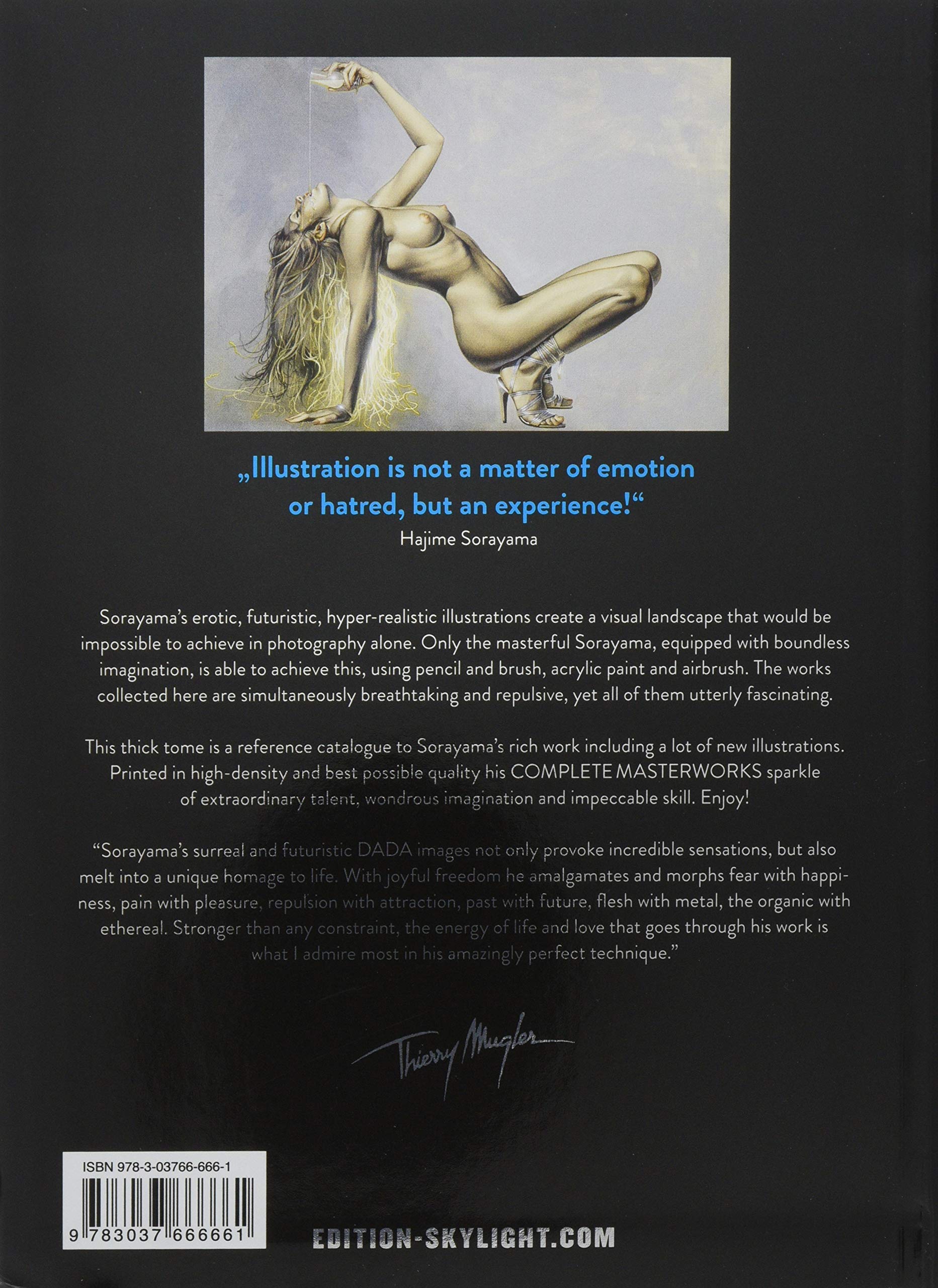 Test in English & Japanese. Sorayamas erotic, futuristic, hyper-realistic illustrations create a visual landscape that would be impossible to achieve in photography alone. Only the masterful Sorayama, equipped with boundless imagination, is able to achieve this, using pencil and brush, acrylic paint and airbrush. The works collected here are simultaneously breathtaking and repulsive, yet all of them utterly fascinating. This thick tome is a reference catalogue to Sorayamas rich work including a lot of new illustrations. Printed in high-density and best possible quality his Complete Masterworks sparkle of extraordinary talent, wondrous imagination and impeccable skill. Enjoy!