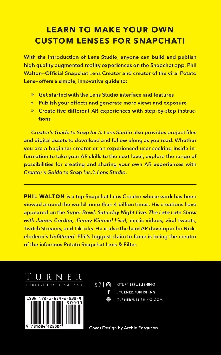 Creator's Guide to Snap Inc.'s Lens Studio also provides project files and digital assets to download and follow along as you read. Whether you are a beginner creator, or an experienced user seeking inside information to take your AR skills to the next level, explore the range of possibilities for creating and sharing your own AR experiences with Creator's Guide to Snap Inc.'s Lens Studio.