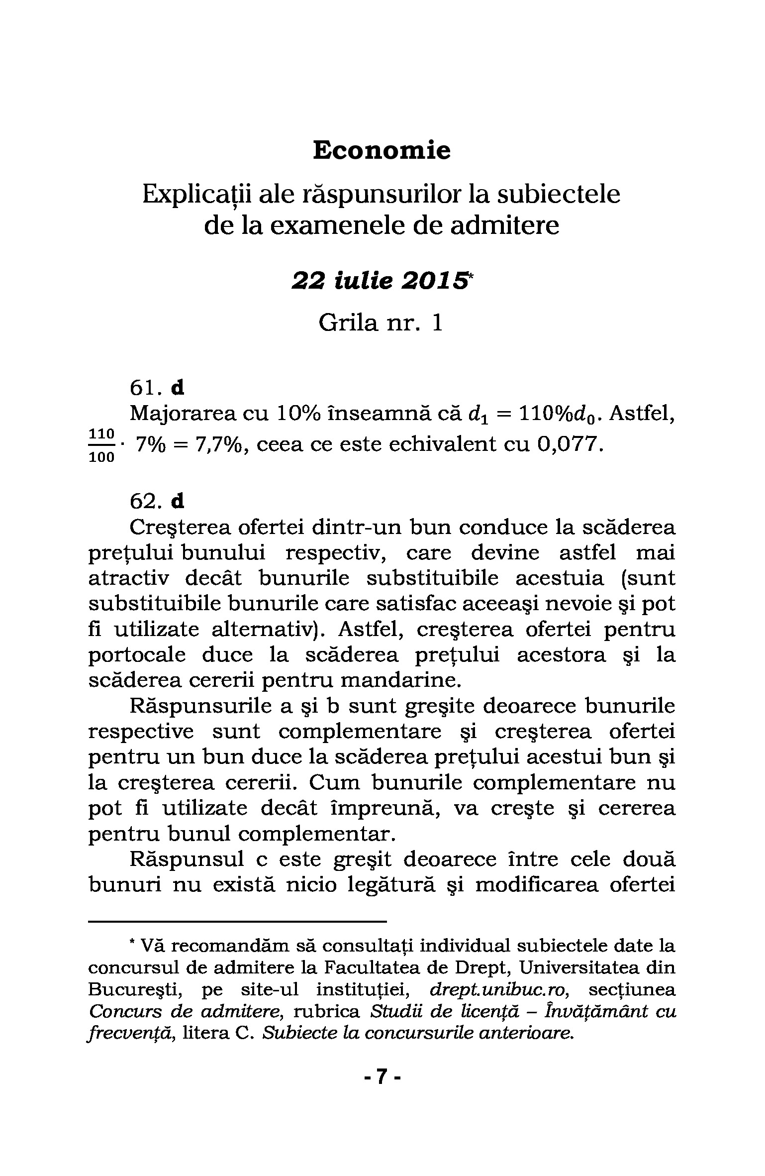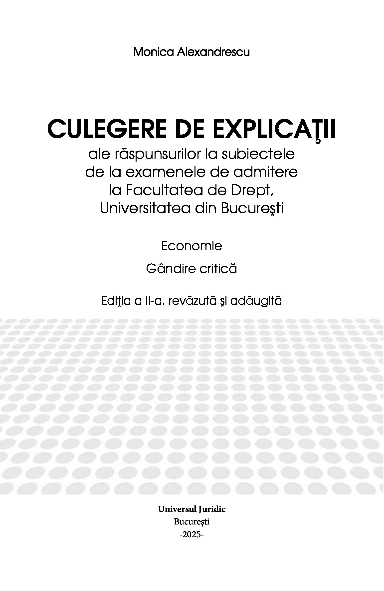 • Culegere de explicatii ale raspunsurilor la subiectele de la examenele de admitere la Facultatea de Drept, Universitatea din Bucuresti