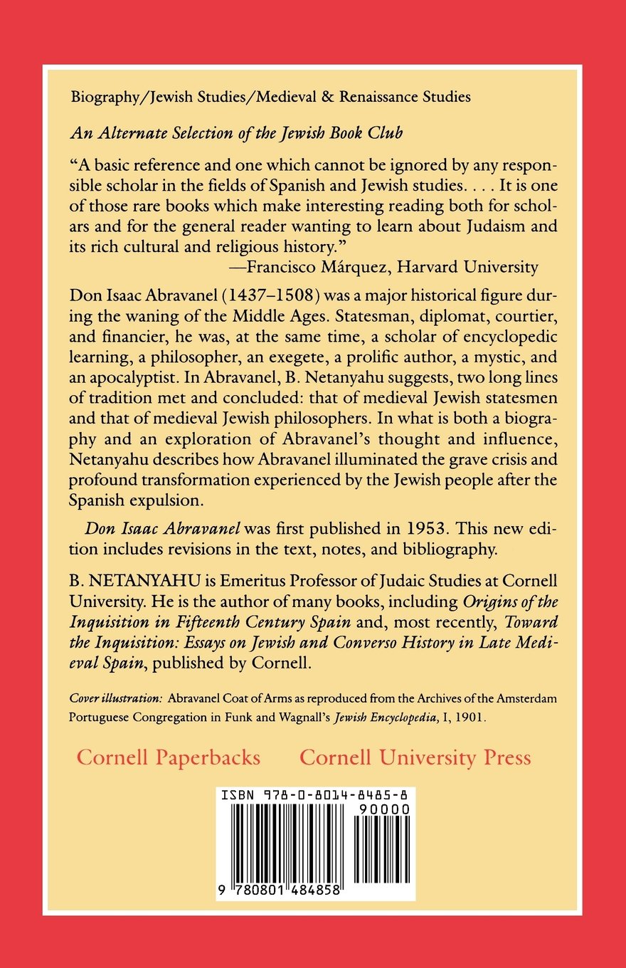 Don Isaac Abravanel (1437–1508) was a major historical figure during the waning of the Middle Ages. Statesman, diplomat, courtier, and financier, he was, at the same time, a scholar of encyclopedic learning, a philosopher, an exegete, a prolific author, a mystic, and an apocalyptist. In Abravanel, B. Netanyahu suggests, two long lines of tradition met and concluded: that of medieval Jewish statesmen and that of medieval Jewish philosophers. In what is both a biography and an exploration of Abravanel's thought and influence, Netanyahu describes how Abravanel illuminated the grave crisis and profound transformation experienced by the Jewish people after the Spanish expulsion. First published in 1953, Don Isaac Abravanel has been out of print for several years. This new edition includes revisions in the text, notes, and bibliography.