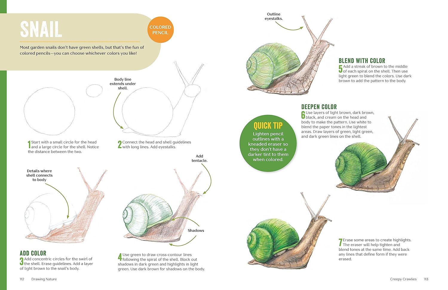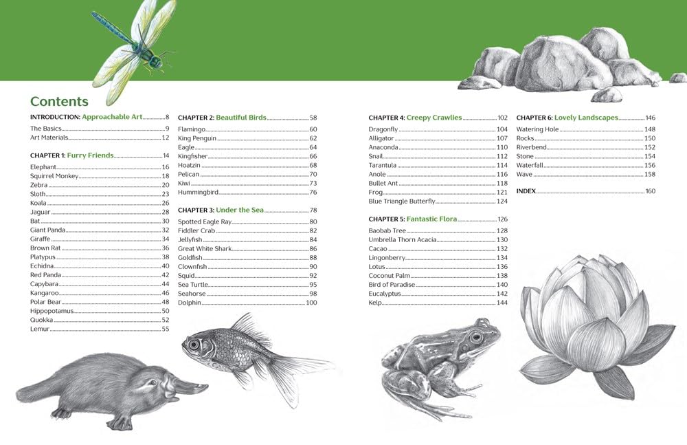 "Best-selling author and artist Catherine Holmes goes beyond the backyard with Drawing Nature, a quick and easy guide to drawing animals, plants, and landscapes from across the globe. Step-by-step tutorials break down how to illustrate perennial favorites like eagles and elephants, as well as more exotic subjects like capybaras and baobab trees, in just fifteen minutes per project. Readers will work in pencil, oil pastel, and other media as they learn about techniques like shading, scumbling, and hatching. From cuddly koalas to hairy tarantulas, Drawing Nature lets nature lovers of all ages draw fascinating flora and fauna from every continent"--.