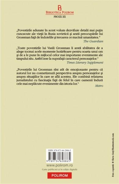 „Povestirile lui Grossman sint atit de emotionante pentru ca autorul lor nu cosmetizeaza perspectiva asupra personajelor si asupra situatiilor in care se afla acestea. Ele combina relatarea jurnalistului cu fascinatia fata de felul in care oamenii indura cele mai neplacute evenimente din istoria lor.” (Metro)
