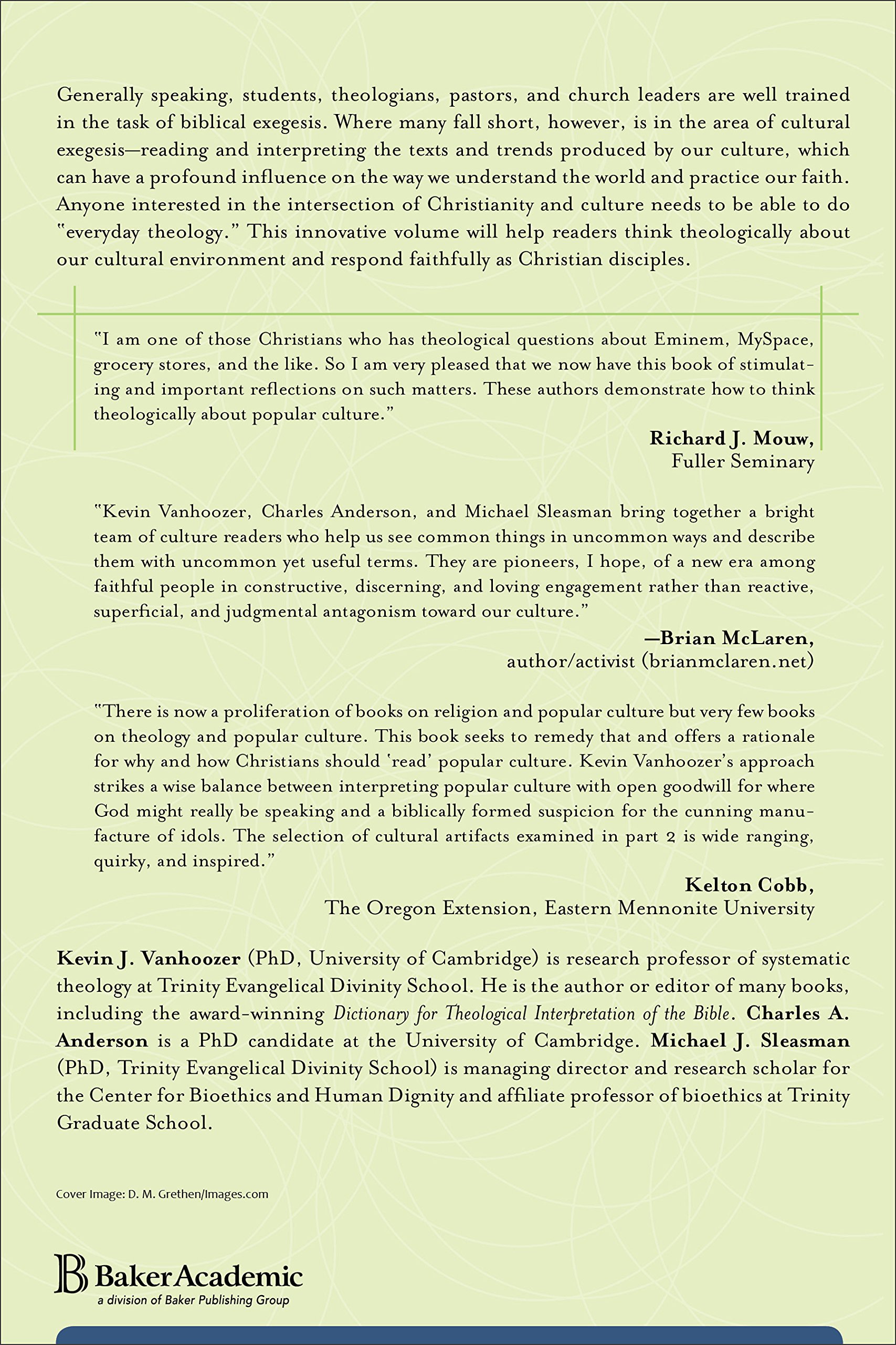 Everyday theology is the reflective and practical task of living each day as faithful disciples of Jesus Christ. In other words, theology is not just for Sundays, and it's not just for professional theologians. Everyday Theology teaches all Christians how to get the theological lay of the land. It enables them to become more conscious of the culture they inhabit every day so that they can understand how it affects them and how they can affect it. If theology is the ministry of the Word to the world, everyday theologians need to know something about that world, and Everyday Theology shows them how to understand their culture make an impact on it. Engaging and full of fresh young voices, this book is the first in the new Cultural Exegesis series.