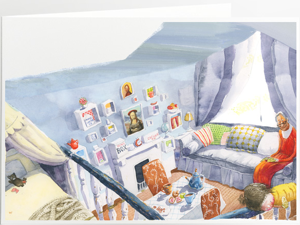 Seria de felicitari ale Irinei Dobrescu are la baza ilustratii de carti in marea majoritate.