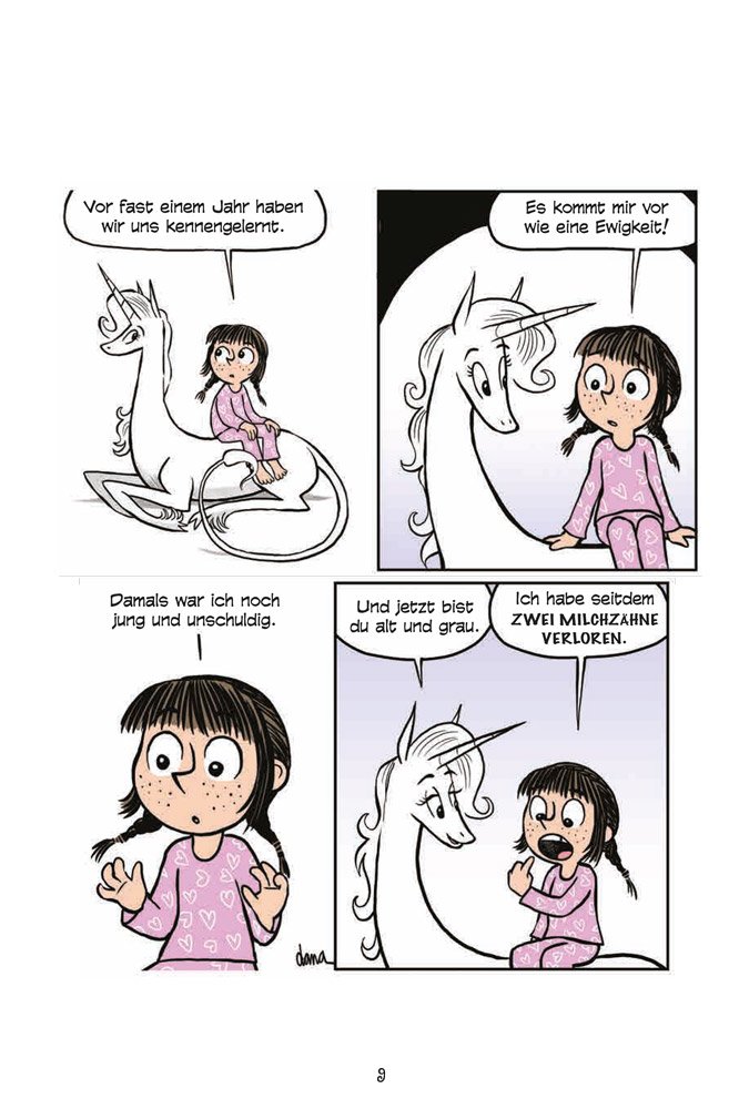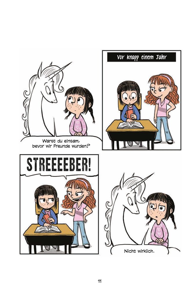Keine Frage! Fibi, die Heldin dieses Comics, möchte nichts lieber, als das Einhorn Maiglöckchen zur besten Freundin haben. Gemeinsam stellen sie sich den ganz normalen Problemen des (Schul-)Alltags (gemeine Klassenkameraden, Schulsport, Klavierunterricht) und weniger Alltäglichem (magisches Haar, Süßigkeiten speiende Drachen).