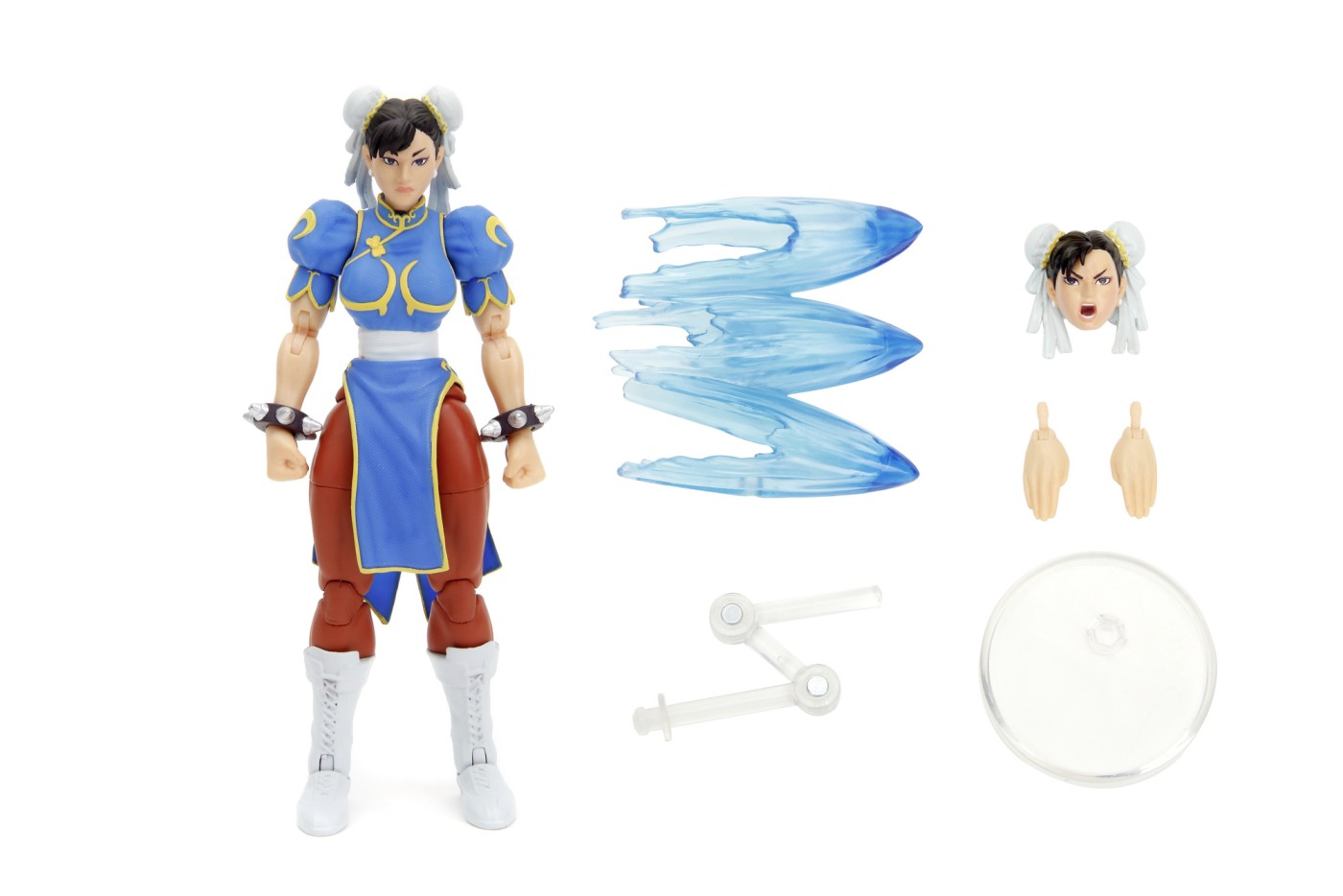 Figurina Jada Toys Street Fighter CHUN-LI, 15 cm - figurina de actiune de colectie articulata din Street Fighter 2: The Final Challengers, cu cap, maini + accesorii interschimbabile.