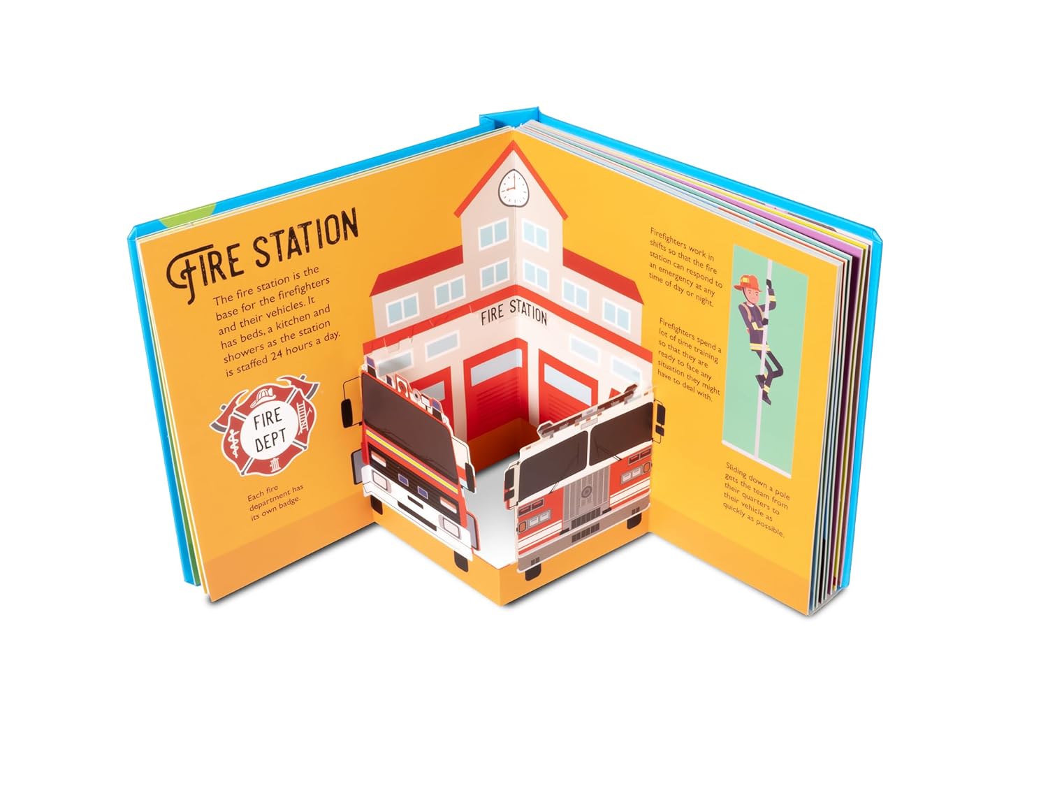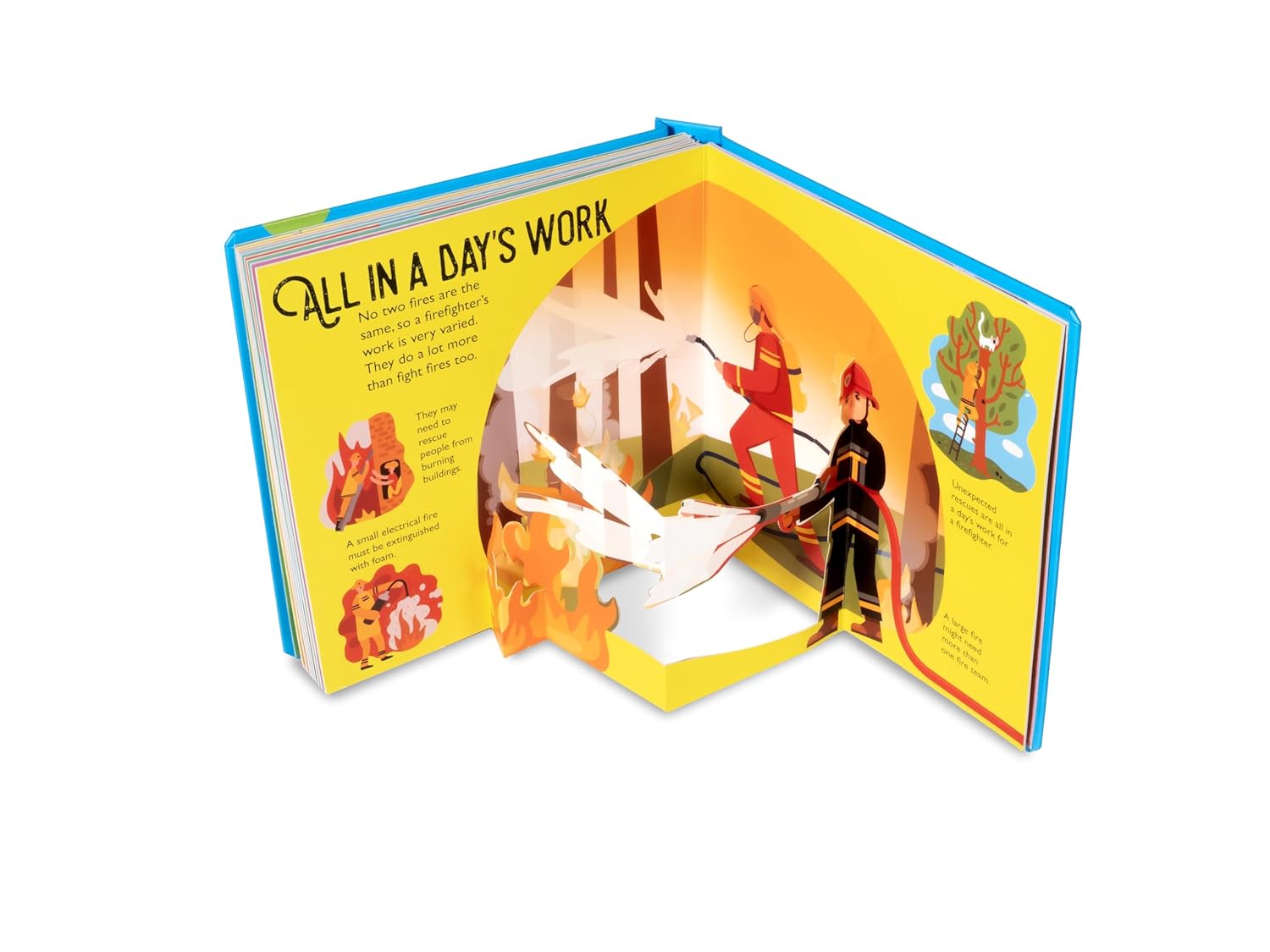 10 fabulous pop-ups will tell you the secrets of the world of firefighters: Learn about the goings on at the fire station, how to tame a burning forest and what clothes to wear to stay safe in front of a fire.