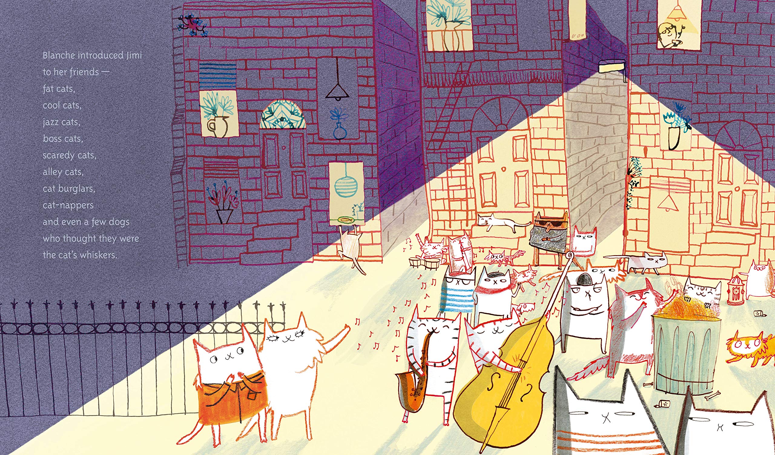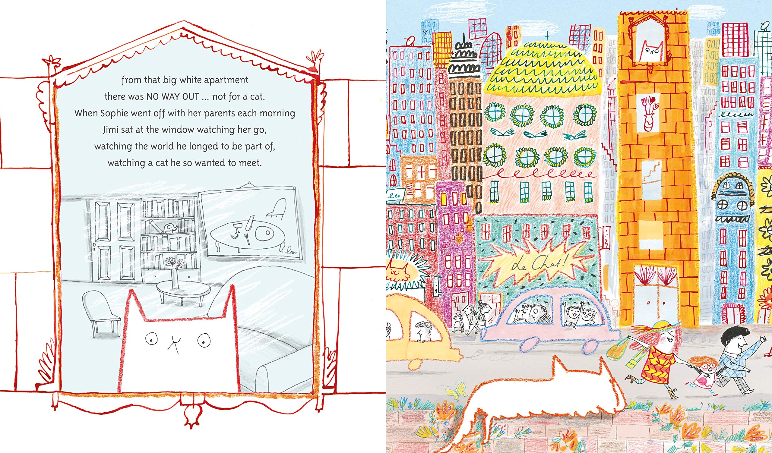 Sophie absolutely adores Jimi and smothers him with treats. She thinks he has everything a cat could possibly desire. And Jimi does ... but he doesn’t ... because secretly Jimi longs to explore the bright and bustling world outside. So when Sophie rushes out one day forgetting her keys, there’s only one thing for it: Jimi slips on his coat and skedaddles out of there, too! Where will he go and who will he meet on those wild and exciting streets? And what on earth will Sophie say?