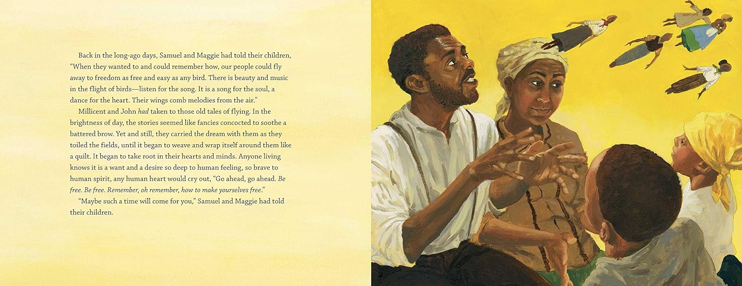 Brother and sister Millicent and John are slaves on Simon Plenty's plantation and have suffered one hurt and heartbreak after another. Their parents had told them old tales of how their ancestors had flown away to freedom just as free and easy as a bird. Millicent and John hold these stories in their hearts long after their parents are gone. "Maybe such a time will come for you," their parents said. Then one day a mysterious bird appears in their lives. The bird transforms them and gives them the courage to set their plan into motion and escape to freedom.