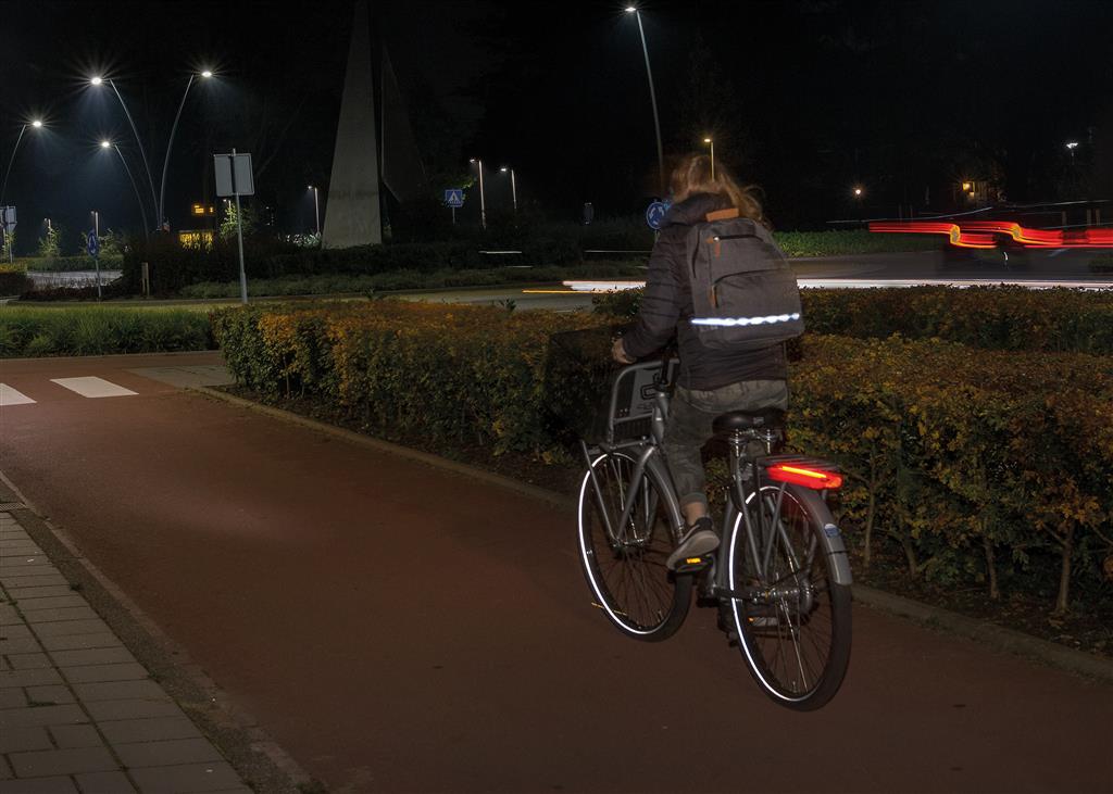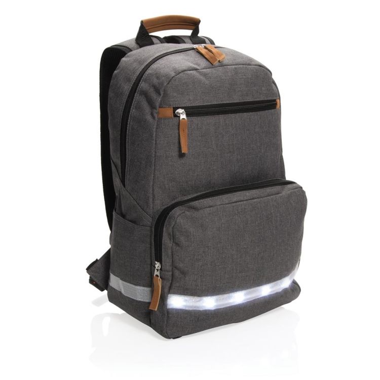 Ghiozdan Led - Grey, din poliester, prevazuta cu o banda LED pentru siguranta, potrivit pentru laptop de 13 inch.