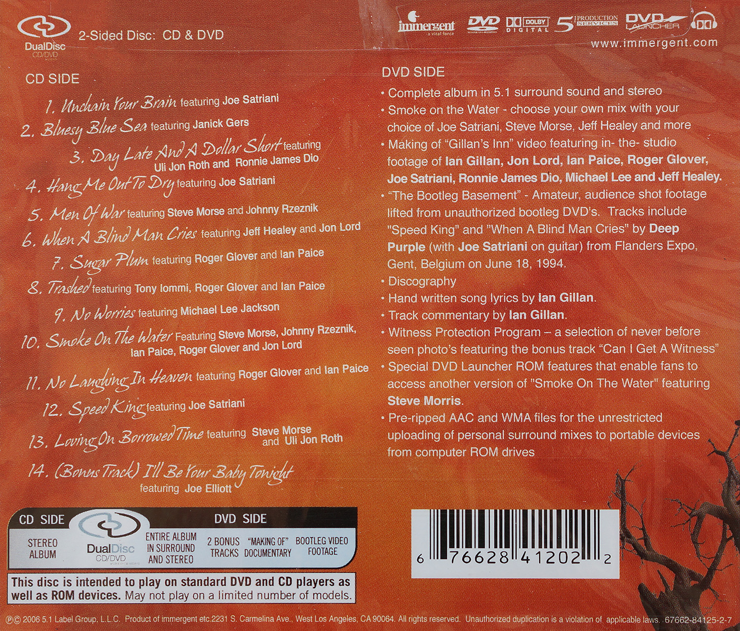 - "The Bootleg Basement" - Amateur audience shot footage including "Speed King" and "When A Blind Man Cries" by Deep Purple (with Joe Satriani on guitar) from Belgium 1994 and "No Laughing In Heaven", "Hang Me Out To Dry", "Men Of War", "Into The Fire", "Moonshine" and "Sugar Plum" from the 2006 "Gillan's Inn" Tour.