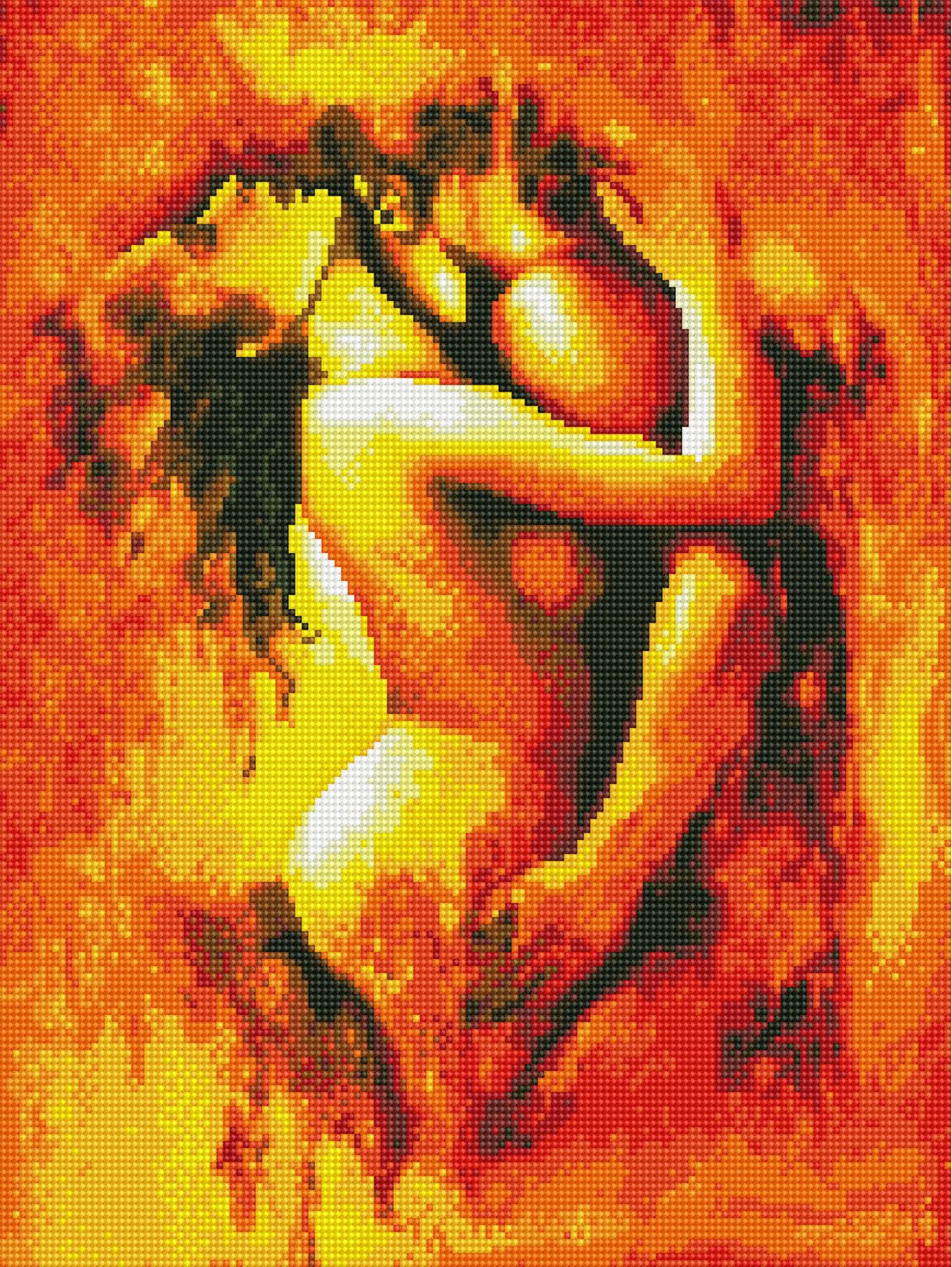 Setul conține: pânză de lucru pusă pe șasiu din lemn, imagine tipărită cu suprafață adezivă, mărgele tip diamante, sortate după culori cu simboluri ce corespund cu locul lor pe imagine, 1 tăviță pentru diamante, 1 recipient cu ceară specială, 1 pensetă, 1 stilou special pentru prinderea și plasarea diamantelor.