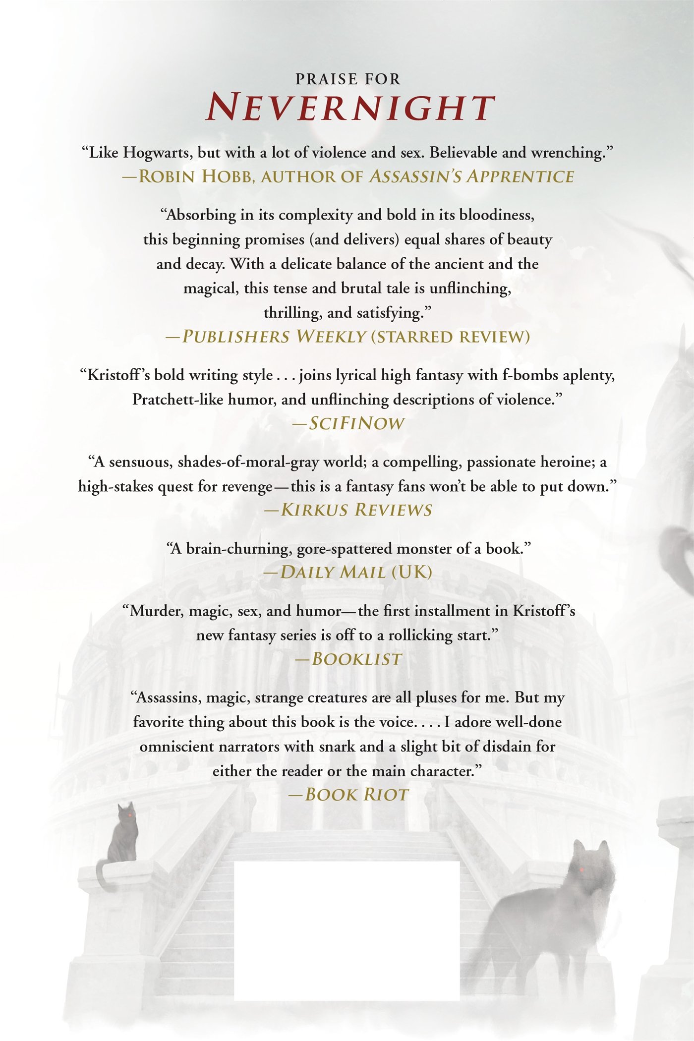 The second thrilling installment of the award-winning Nevernight Chronicle, from New York Times bestselling author Jay Kristoff.In a land where three suns almost never set, a ruthless assassin continues her quest for vengeance against the powers who destroyed her family.Mia Corvere has found her place among the Blades of Our Lady of Blessed Murder, but many in the Red Church hierarchy think she's far from earned it. Plying her bloody trade in a backwater of the Republic, she?s no closer to ending the men who destroyed her familia; in fact, she?s told directly that Consul Scaeva is off limits. But after a deadly confrontation with an old enemy, Mia's suspicions about the Red Church's true motives begin to grow.When it's announced that Scaeva will be making a rare public appearance at the conclusion of the grand games in Godsgrave, Mia defies the Church and sells herself to a gladiatorial collegium for a chance to finally end him. Upon the sands of the arena, Mia finds new allies, bitter rivals, and more questions about her strange affinity for the shadows. But as conspiracies unfold within the collegium walls, and the body count rises, Mia will be forced to choose between love and revenge, and uncover a secret that could change the very face of her world.