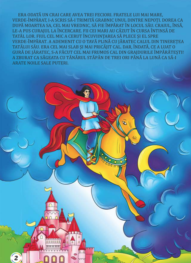 Carte de colorat cu povesti, cu desene clare, si text cu corp mare, cu pagini color oferite ca exemplu, pentru ca cei mici sa le poata citi, deslusi si colora.