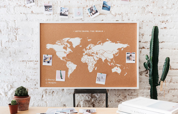 Harta din pluta incadrata intr-o rama alba, ideala pentru planificarea calatoriilor viitoare, dar si pentru amintirea locurilor pe care le-ati vizitat deja. Harta vine impreuna cu 20 de pinuri colorate, cu ajutorul carora puteti marca destinatiile.