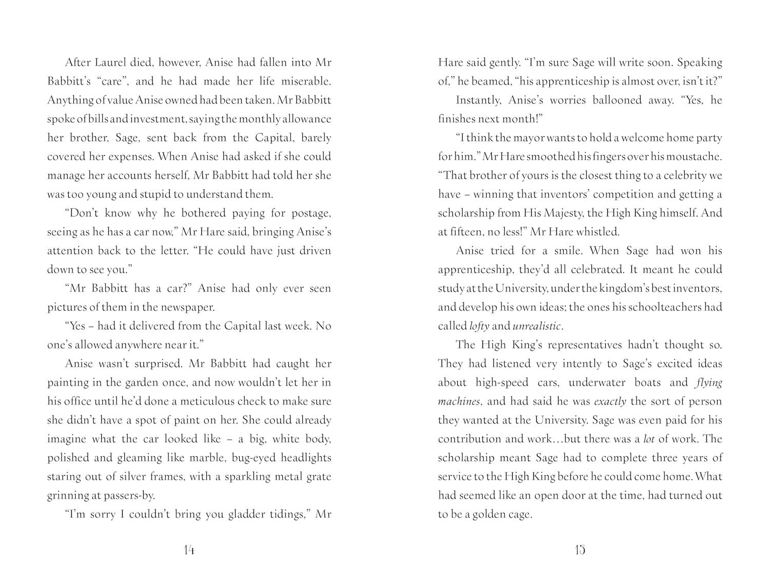 Anise's job is to help humans and daemons live happily together. But when the villainous Mr Babbitt tries to steal her home in the White Woods and drive the daemons out, she is forced to travel to the capital to ask the High King for help. First, though, she'll have to convince him that daemons still exist.