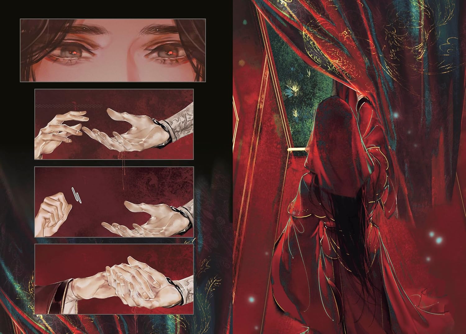 The first edition hardcover of Heaven Official’s Blessing (The Comic) will feature designed sprayed edges, custom endpapers, deluxe jacket, and a custom case stamp with gold foil! (Available while stocks last)