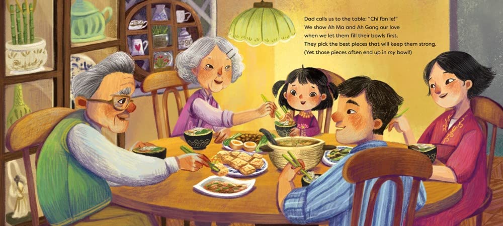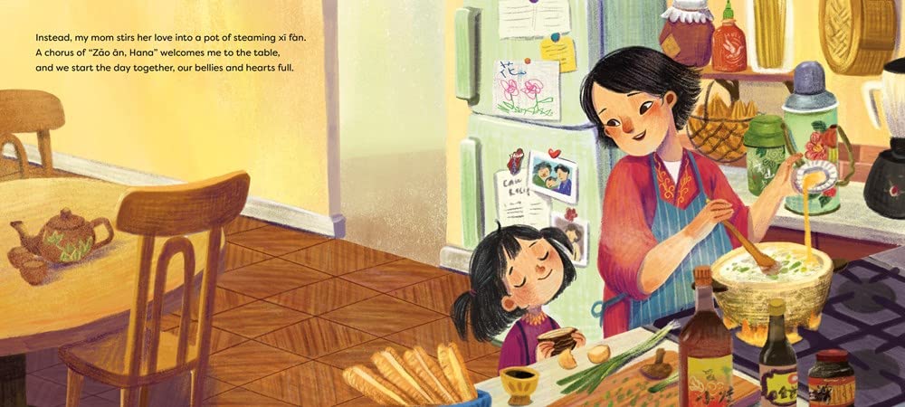 How do you tell your family that you love them? For Hana, love is all around her: Mom stirs love into a steaming pot of xifan. Dad cheers with love at her soccer game. Hana says good night with love by rubbing her grandma's feet and pouring her grandpa his sleepy tea. And as the light fades, Hana's parents tuck her into bed and give her a good night kiss. So many families express their love in all they do for one another, every day. Here is a book that wraps you in a hug and invites your family to share their own special ways of showing love.