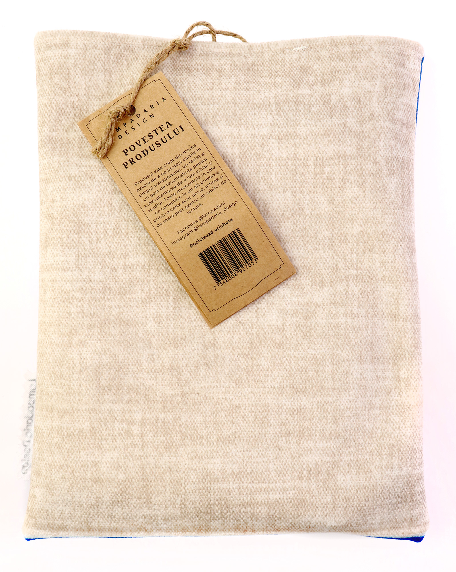Acesta husa de carte a fost conceputa pentru protejarea cartilor atunci cand le luam cu noi fie intr-o poseta, geanta sau bagaj de calatorie. Materialul folosit este o combinatie intre bumbac si poliester foarte placut la atingere cu inchidere in partea de sus cu un scai. Design-ul si mesajul de pe aceasta husa intra intr-o rezonanta deosebita cu iubitorii de lectura atat ale cartilor fizice cat si ale dispozitivelor Kindle sau a Minitabletelor.