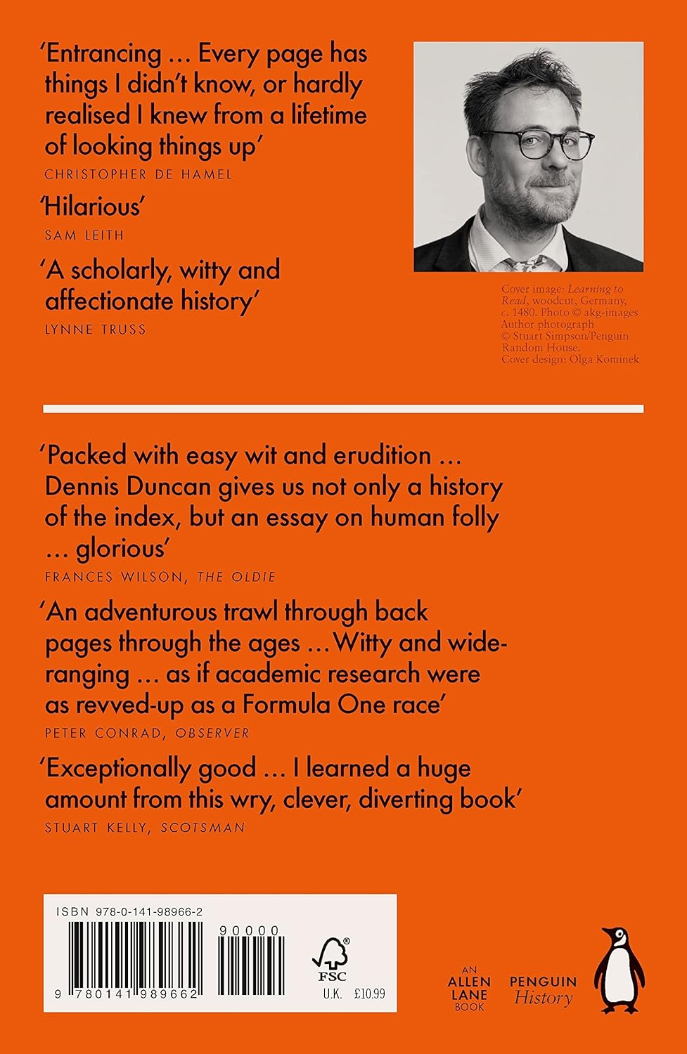 Charting its curious path from the monasteries and universities of thirteenth-century Europe to Silicon Valley in the twenty-first, Dennis Duncan reveals how the index has saved heretics from the stake, kept politicians from high office and made us all into the readers we are today. We follow it through German print shops and Enlightenment coffee houses, novelists' living rooms and university laboratories, encountering emperors and popes, philosophers and prime ministers, poets, librarians and - of course - indexers along the way. Revealing its vast role in our evolving literary and intellectual culture, Duncan shows that, for all our anxieties about the Age of Search, we are all index-rakers at heart, and we have been for eight hundred years.