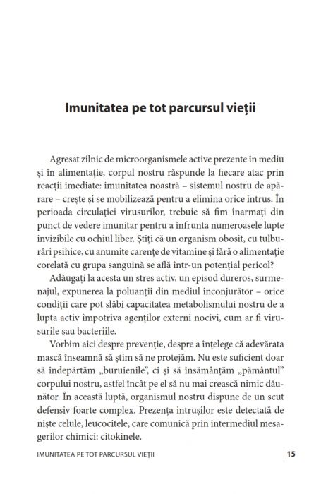 În fața noilor virusuri și a diferitelor atacuri cu care orga¬nismul dumneavoastră se confruntă de-a lungul întregii sale vieți, Valerie Lamour, naturopat, și Olivier Madelrieux, doctor în farmacie, vă prezintă o metodă inovatoare și eficientă adaptată fiecărei grupe sanguine (A, B, AB și 0), pentru a vă crea un scut imunitar puternic.