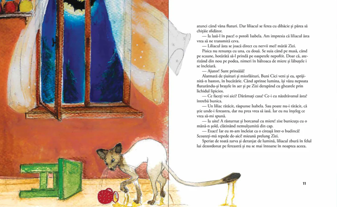 Fetița care a salvat iubirea, Isabela, nu intră niciodată în bucluc... sau cel puțin așa crede bunica ei. Zizi, pisica, pufnește în râs când aude așa o năzdrăvănie, pentru că știe ea mai bine de ce e în stare Isabela!