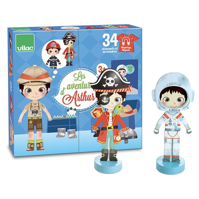 Acest produs contine 34 de magneti din lemn (articole vestimentare) pentru baietelul Arthur.