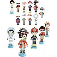 Cu ajutorul pieselor din garberoba baietelului, copiii il vor accesoriza pe acesta creand tinute nemaipomenite, jucandu-se in acelasi timp. Manechinul este din lemn.